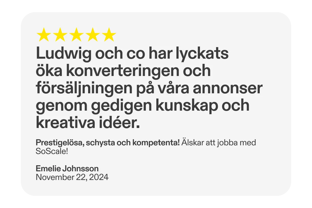Boka ett kostnadsfritt 30-minuters samtal med oss – vi analyserar vad som krävs för att ta dina betalda annonser till nästa nivå.